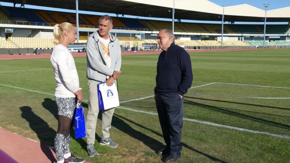Τον Πρόεδρο του ΚΟΑ συνόδευε η Δώρα Κυριάκου, παλιά πρωταθλήτρια στίβου και τέως Μέλος ΔΣ ΚΟΑ, η οποία βρισκόταν στη Λεμεσό για προετοιμασία.