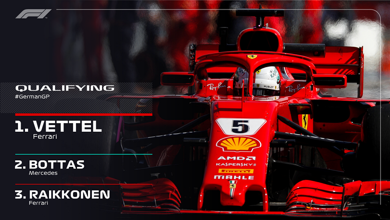 Μ' έναν εξωπραγματικό χρόνο στην τελευταία του προσπάθεια ο Σεμπάστιαν Φέτελ διέλυσε το ρεκόρ γύρου στο Χόκενχαϊμ και πήρε την pole position, αφήνοντας δεύτερο τον Μπότας και 3ο τον Ράικονεν. «Καταστροφή» για Χάμιλτον.