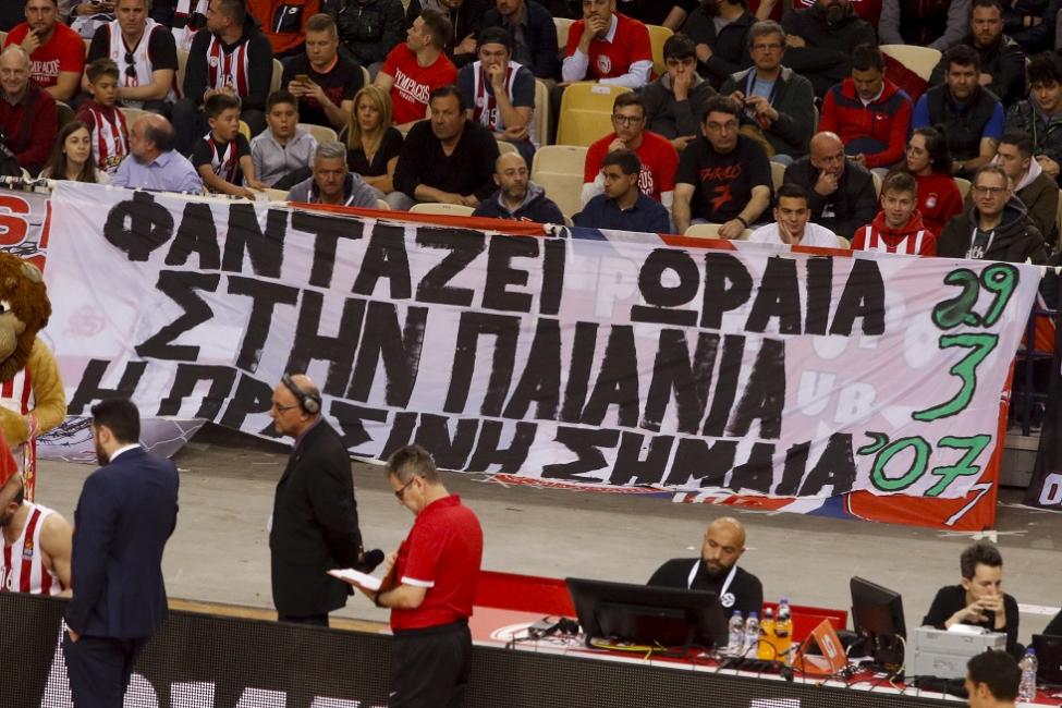 Οι οπαδοί του Ολυμπιακού στον αγώνα με την Ζαλγκίρις ανάρτησαν απαράδεκτα πανό για τα επεισόδια που είχαν γίνει το 2007 στην Παιανία και τα οποία είχαν ως αποτέλεσμα τον θάνατο του οπαδού του Παναθηναϊκού, Μιχάλη Φιλόπουλου.