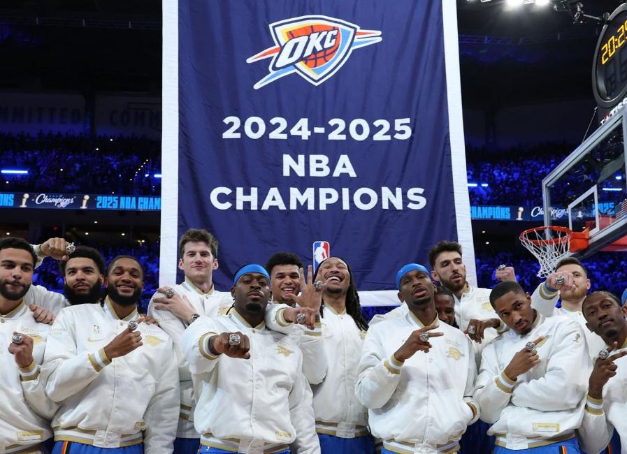 Οι Οκλαχόμα Σίτι Θάντερ κατέκτησαν το πρωτάθλημα στο NBA την περασμένη αγωνιστική περίοδο και ως είθισται στην πρεμιέρα της επόμενης αγωνιστικής περιόδου, οι πρωταθλητές παρέλαβαν τα δαχτυλίδια τους. Αυτό συνέβη σε ειδική τελετή πριν το νικηφόρο ματς απέναντι στους Χιούστον Ρόκετς, όπου το λάβαρο για τον τίτλο 2024-25 ανέβηκε στην οροφή του γηπέδου.