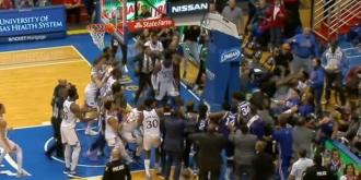 Τρελή γενικευμένη σύρραξη, με τους παίκτες να φτάνουν στην εξέδρα (video)