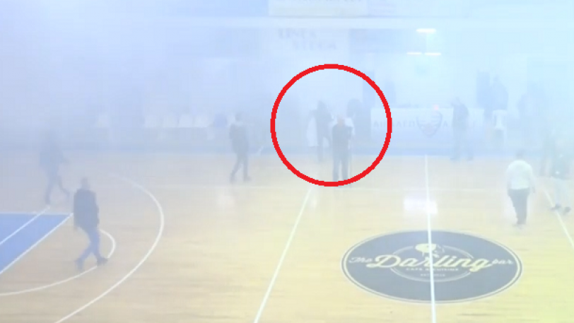 Το γήπεδο γέμισε με καπνό πριν ολοκληρωθεί η αναμέτρηση και κάποιος βρήκε την ευκαιρία, κατέβηκε άνετος στο παρκέ, πήρε το τρόπαιο και άρχισε να τρέχει!