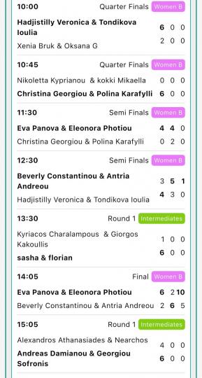 Στην κατηγορία των «Women B», οι Πάνοβα/Φωτίου χρειάστηκε να περάσουν από τρίσετη δοκιμασία για να «λυγίσουν» στο τέλος τις Κωνσταντίνου/Ανδρέου με 2-1 και 6-2, 2-6, 10-5 σε θεαματική αναμέτρηση. Αυτός ήταν αλλος ένας τίτλος για την Πάνοβα, που δείχνει ότι το πάντελ της ταιριάζει ιδανικά, παρότι προέρχεται από το τένις και συνεχίζει να «μεταφέρει» την εμπειρία της στο νέο της άθλημα, στο οποίο και κάνει εξαιρετικές εμφανίσεις.