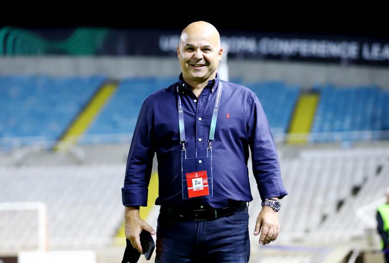 Ευδιάθετος και χαμογελαστός ο πρόεδρος της Ανόρθωσης Ευγένιος Χαμπουλάς πριν την αναμέτρηση της ομάδας του σμε αντίπαλο την Παρτίζαν στο ΓΣΠ, για την πρεμιέρα των ομίλων του Κόνφερενς Λιγκ.