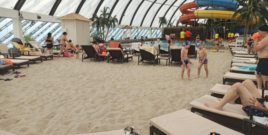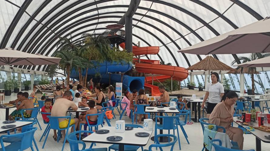 Στην κορυφή ωστόσο, άμμος, και τεχνητή παραλία, ήταν ότι πιο εντυπωσιακό είχε να μας επιδείξει το εμπορικό κέντρο. Πέραν των πολλών εστιατορίων, καφετεριών , καταστημάτων, αίθουσες βίντεο παιχνιδιών και όχι μόνο.