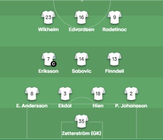 Με δύο αλλαγές σε σχέση με τον πρώτο αγώνα στη Σουηδία παρέταξε την ομάδα του ο προπονητής της Τζουγκάρντεν για τον δεύτερο αγώνα με τον ΑΠΟΕΛ στο ΓΣΠ (19:00).
