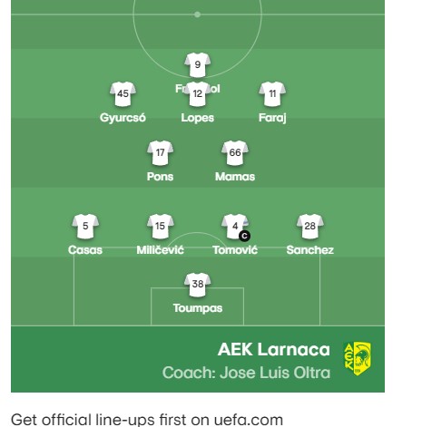 Δείτε παρακάτω πως παρατάσσει την ΑΕΚ ο Χοσέ Λουίς Όλτρα για το παιχνίδι με την Τορπέντο στην Ουγγαρία: