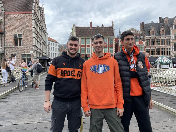 Οι φίλοι του ΑΠΟΕΛ που ακολούθησαν την αποστολή της ομάδας στην Γάνδη για τον σημερινό αγώνα ετοιμάζονται σιγά-σιγά. Βγήκαν από τα ξενοδοχεία, άρχισαν να περιπλανώνται στα σοκάκια της πόλης μέχρι να έρθει η έναρξη του αγώνα.