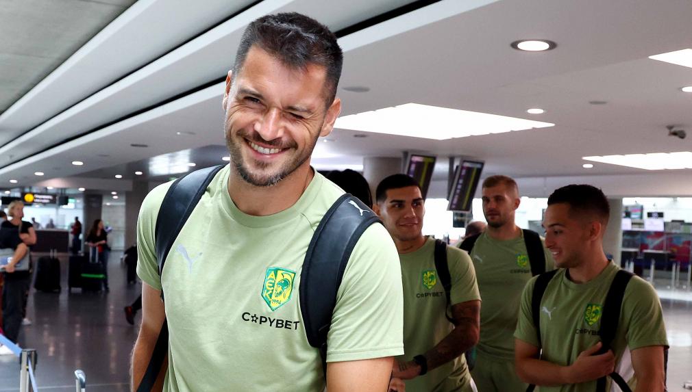 Χαρούμενος και ευδιάθετος ο Ζλάταν Αλομέροβιτς λίγο πριν την αναχώρηση της ΑΕΚ για Λονδίνο για τον αγώνα της Πέμπτης με την Κρίσταλ Πάλας. Ο Σέρβος τερματοφύλακας με 16 συνολικά συμμετοχές τη φετινή σεζόν, ετοιμάζεται για άλλη μία μάχη, τη δυσκολότερη του ίσως για φέτος απέναντι στα θηρία της Κρίσταλ Πάλας.