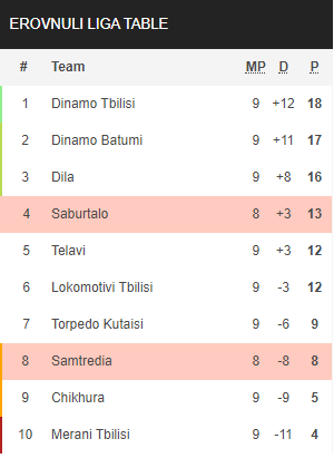 Στο τελευταίο της παιχνίδια η ομάδα του Τιμούρ Σαλαμπερίτζε έμεινε στο 1-1 με την Ντίλα αν και προηγήθηκε στο 28ο λεπτό με τον Τέρα δέχθηκε την ισοφάριση στο 80ο λεπτό.