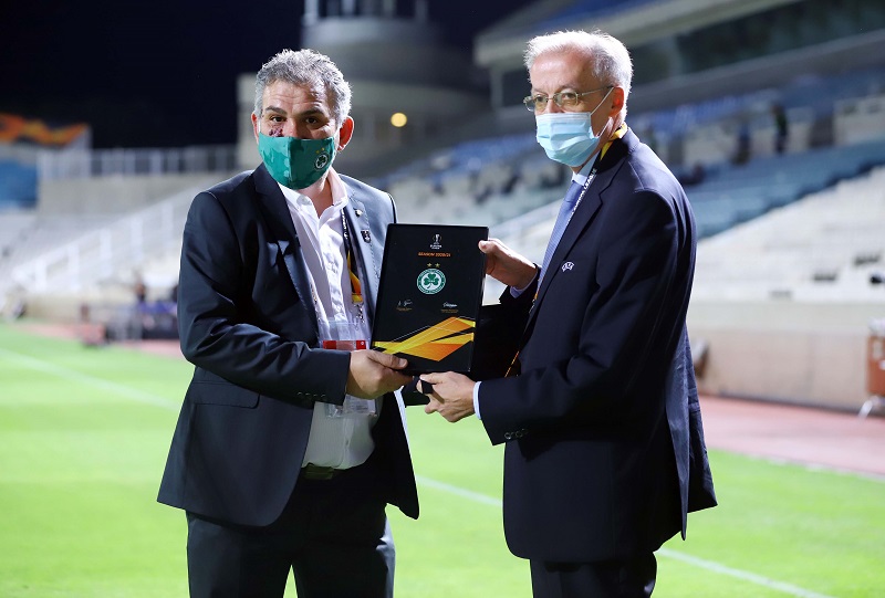 Πριν από την έναρξη του αγώνα, ο αναπληρωτής Πρόεδρος των πρασίνων Δημήτρης Γρηγόρη, παρέδωσε μια πλακέτα σε άνθρωπο των Ολλανδών.
