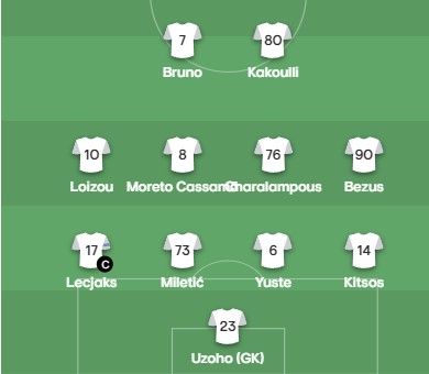 Ουζόχο, Λέτσιακς, Μίλετιτς, Γιούστε, Κίτσος, Λοΐζου, Μπέζους, Χαραλάμπους, Κασάμα, Μπρούνο, Κακουλλής