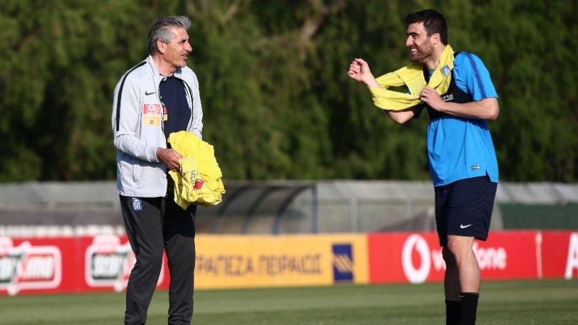 ...τις 244 μέρες στην εθνική: «Κοιτάξτε εγώ με τον Γραμμένο δεν είχα καμία σχέση πριν. Τον γνώρισα τον άνθρωπο όταν πήγα στην εθνική ομάδα. Τον ήξερα εξ αποστάσεως. Τίποτα περισσότερο, τίποτα λιγότερο. Γράφανε ότι με έστειλε ο Σαββίδης. Τιμή μου θα ήταν αν με είχε προτείνει ο Σαββίδης και θα τον ευχαριστήσω εάν έγινε έτσι και δημοσίως. Το θέμα είναι αν εγώ ήμουν ικανός να πάω στην εθνική ομάδα ή όχι και πιστεύω ότι ένα μεγάλο κομμάτι του κόσμου ήθελε να πάω εγώ στην εθνική ομάδα. Εγώ ευχαρίστησα όλους τους προέδρους των ομάδων από την πρώτη συνέντευξη. Τους είπα ευχαριστώ και ότι ελπίζω και πιστεύω ότι μπορούμε να κάνουμε πράγματα. Να πάμε δηλαδή την ομάδα στα τελικά και να τους βγάλω ασπροπρόσωπους. Προσπαθήσαμε να πούμε στα παιδιά ότι πρέπει να πάνε και να τα δώσουν όλα. Δεν είναι καλύτερη καμιά ομάδα από εμάς. Εμείς ήμασταν καλύτεροι κι από τη Φινλανδία. Είμαστε καλύτερη ομάδα από τη Φινλανδία. Δεν το συζητώ. Και σε ποιότητα και στα πάντα».