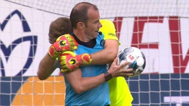 Μόλις του την έδωσε στα χέρια, ο 33χρονος γκολκίπερ αγκάλιασε τον Γερμανό διαιτητή, προκαλώντας την έκπληξή του. Βλέπετε, ήταν πολύ σημαντικό το τρίποντο για την Άουγκσμπουργκ, αφού ανέβηκε στο +7 από τη θέση που οδηγεί σε μπαράζ για την παραμονή. Δείτε το video με πρωταγωνιστή τον Λούτε: