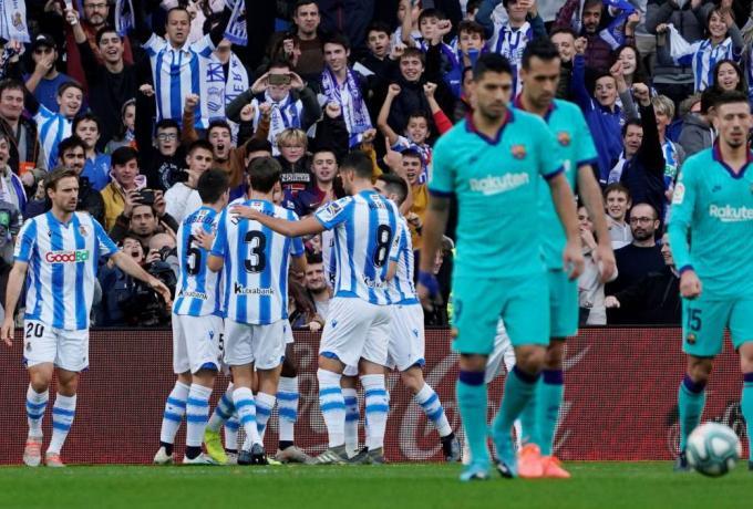 Πιο δυνατά μπήκαν στο παιχνίδι οι γηπεδούχοι, οι Καταλανοί αδυνατούσαν στα πρώτα λεπτά να κυκλοφορήσουν τη μπάλα. Οι παίκτες της Σοσιεδάδ ήταν σαφώς πιο απειλητικοί στο ξεκίνημα και στο 10ο λεπτό ο Μπουσκέτς τράβηξε από τη φανέλα τον Γιορέντε, ο διαιτητής έδωσε το πέναλτι, ο Ογιαρθάμπαλ νίκησε τον Τερ Στέγκεν και έκανε το 1-0.
