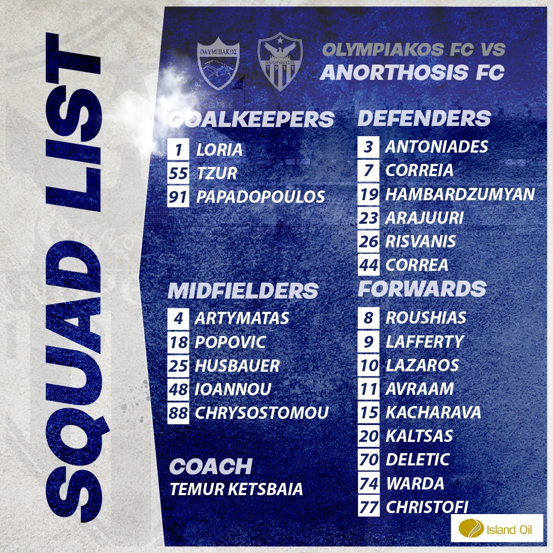 Με το τέλος της προπόνησης έγινε γνωστή και η αποστολή, με τον κ. Τιμούρ Κετσπάγια να μην υπολογίζει στον τραυματία Νίκα Νίνουα και τον ανέτοιμο Άζερ Μπουσουλάτζιτς.