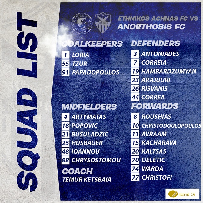 Η Ανόρθωση ανακοίνωσε την αποστολή της ομάδας, ενόψει του αγώνα με τον Εθνικό.