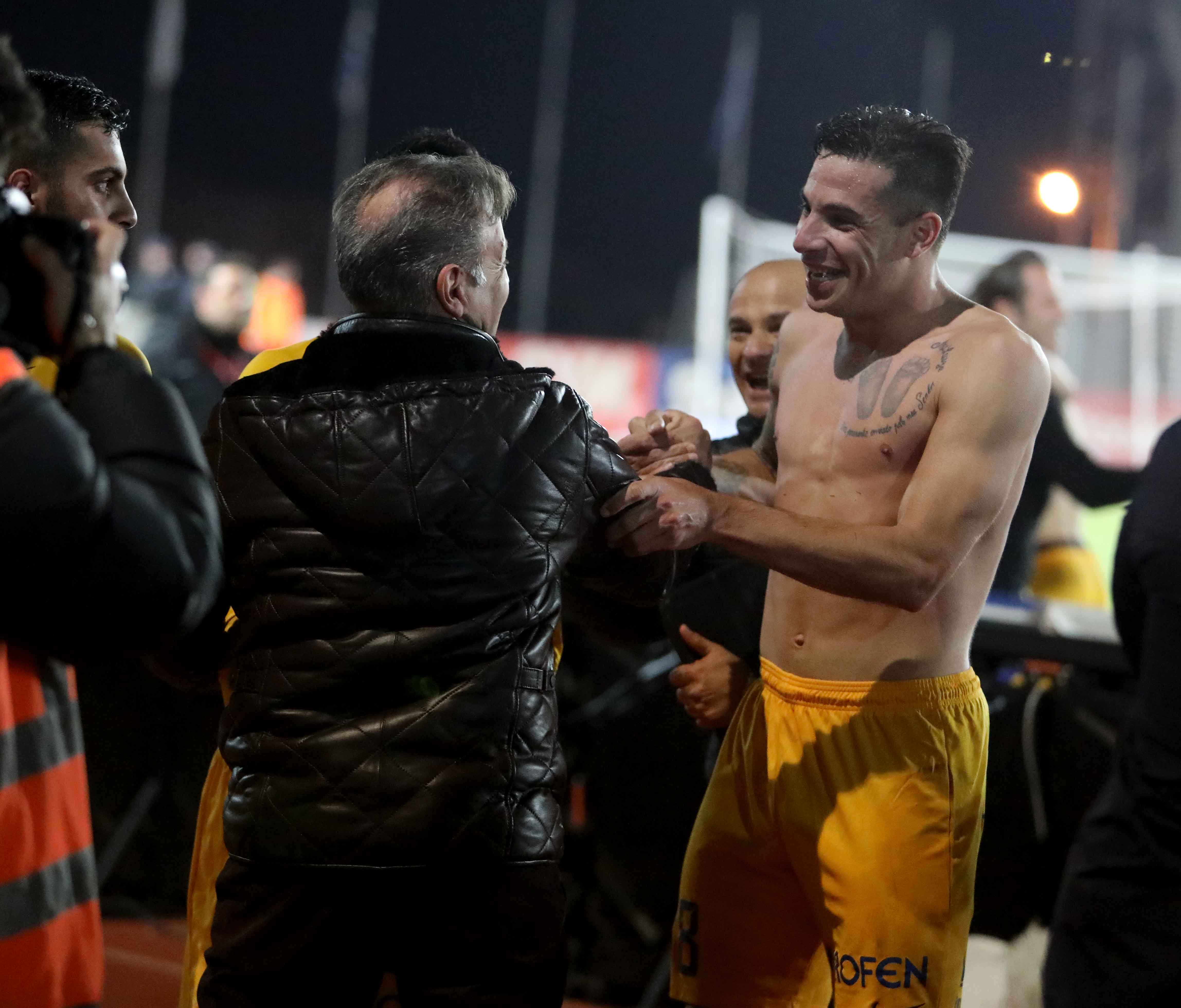 Φανερά χαρούμενος από την ανατροπή και τη μεγάλη νίκη που φέρνει τον ΑΠΟΕΛ ξανά στην κορυφή.