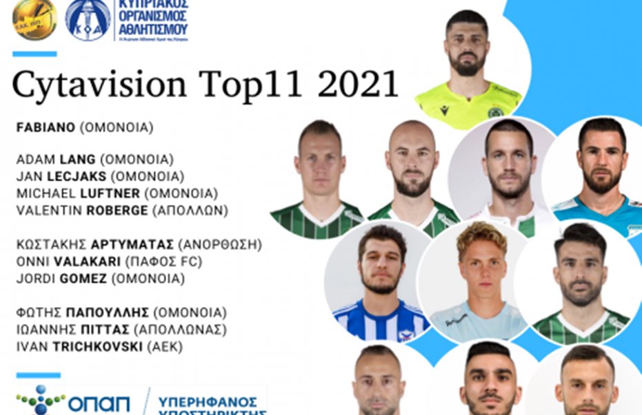 Πρόκειται για τους Γιόρντι Γκόμεθ (Ομόνοια) και Ιβάν Τρισκόφσκι (ΑΕΚ). Στη Cytavision Κορυφαία Ενδεκάδα για το 2021 υπάρχουν έξι εκπρόσωποι από την Ομόνοια, δύο από τον Απόλλωνα και ένας από Ανόρθωση, Πάφο και ΑΕΚ.