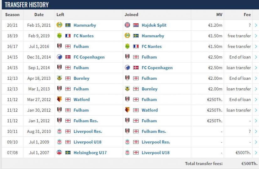 Αξίζει να σημειωθεί πως... κουβαλά μία πλούσια καριέρα, όπου μεταξύ άλλων αγωνίστηκε σε Φούλαμ, Γουότφορντ, Κοπεγχάγη, Ναντ, Χάμαρμπι, ενώ πέρασε και από την ακαδημία της Λίβερπουλ όπου έπαιξε με τις... ρεζέρβες της.
