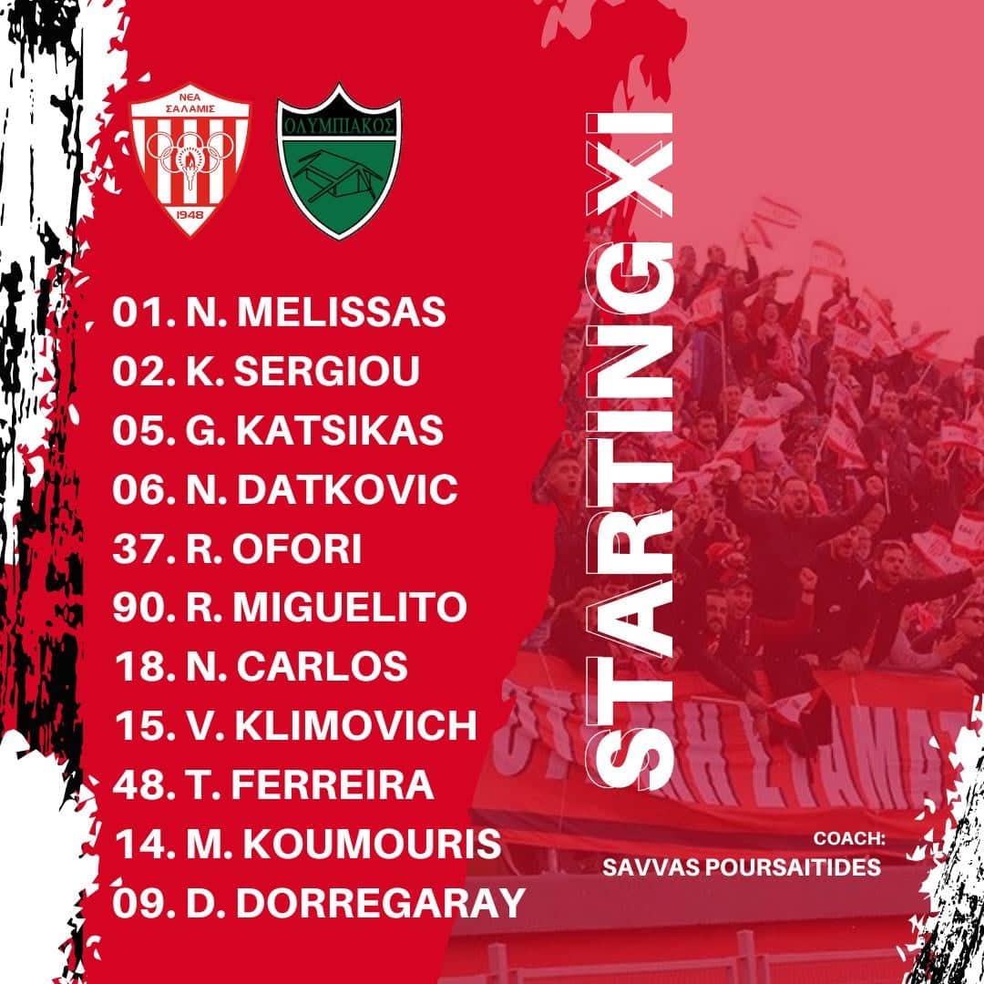 Φιλικό παιχνίδι δίνει με τη Νέα Σαλαμίνα ο Ολυμπιακός στις 19:00 στο «Αμμόχωστος» με τις δύο ομάδες να γνωστοποιούν τις 11άδες.
