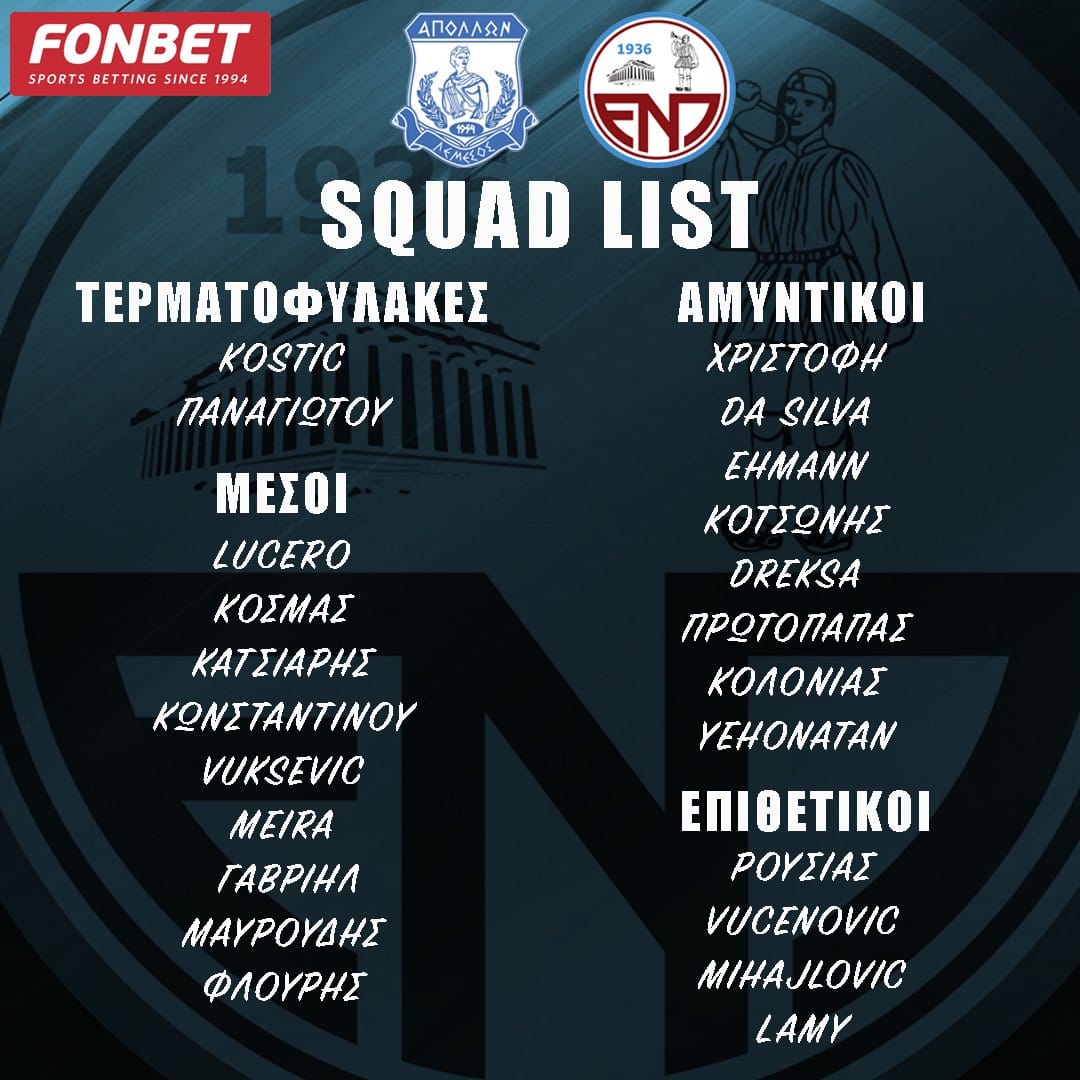 Η ΕΝΠ στην επιστροφή της στην Α' κατηγορία, ταξιδεύει στην Λεμεσό για να αντιμετωπίσει τον πρωταθλητή Απόλλωνα. Χωρίς τους Φερνάν και Γεβρέμοβιτς οι "βυσσινί".