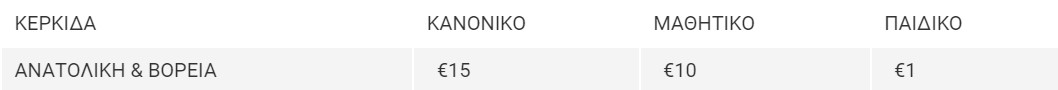 Οι τιμές εισιτηρίων όπως έχουν καθοριστεί από την ΚΟΠ
