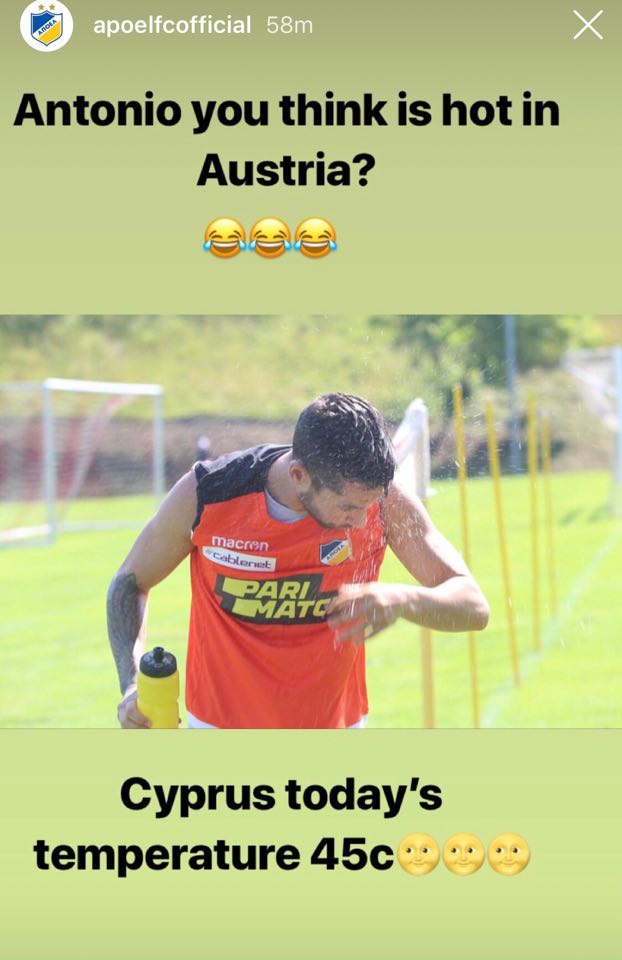 Ανάσες δροσιάς προσπαθεί να πάρει ο Γιάκολις στην προετοιμασία του ΑΠΟΕΛ στην Αυστρία. Όπως και στην Κύπρο και σε όλη την Ευρώπη επικρατούν συνθήκες καύσωνα με τον ΑΠΟΕΛ να τρολάρει τον Κροάτη μεσοεπιθετικό με την πιο κάτω φωτογραφία.