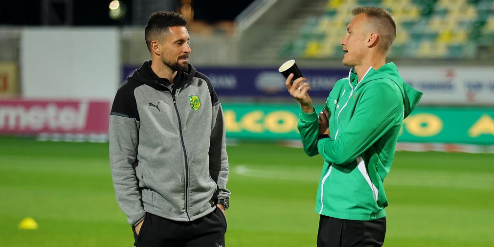 O Άνταμ Λανγκ της Ομόνοιας και ο Άνταμ Γκιούρσκο της ΑΕΚ τα είπαν για λίγο πριν την έναρξη του αγώνα στην Αρένα. Και οι δύο Ούγγροι που γνωρίζονται πολύ καλά τόσο από την Εθνική τους όσο και από την κοινή τους παρουσία στην Videoton.