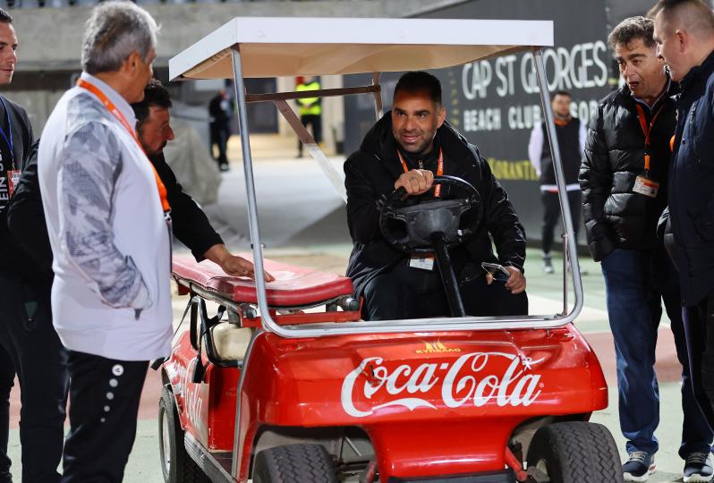 Χαλαρές στιγμές για τον Πρόεδρο της Καρμιώτισσας, Σταύρο Δημοσθένους, πριν τον αγώνα με την ΑΕΖ. Πάνω στο αυτοκινητάκι που μεταφέρει τους τραυματίες, ποζάροντας στον φακό.
