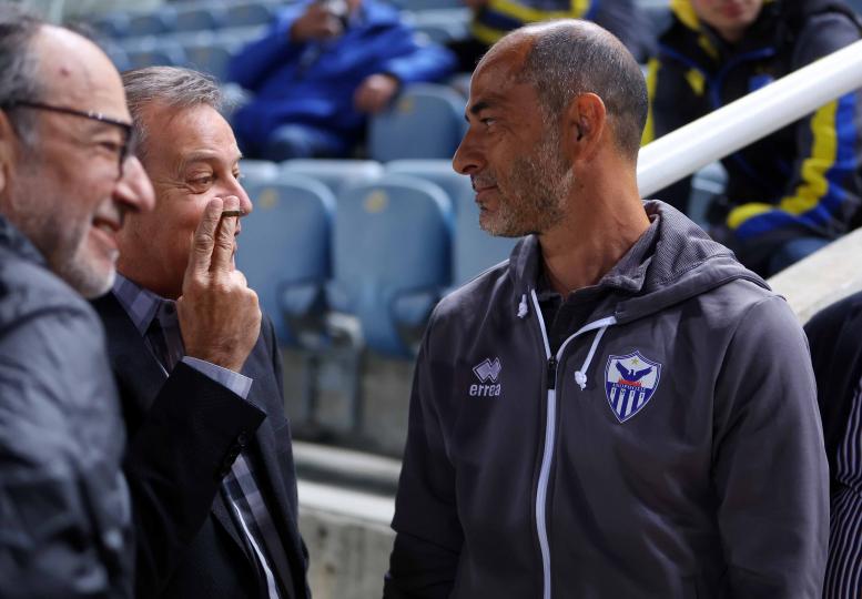 Διοικητικοί παράγοντες του ΑΠΟΕΛ είχαν μια ευχάριστη συζήτηση με τον προπονητή της «Κυρίας», λίγο πριν την έναρξη του αγώνα.