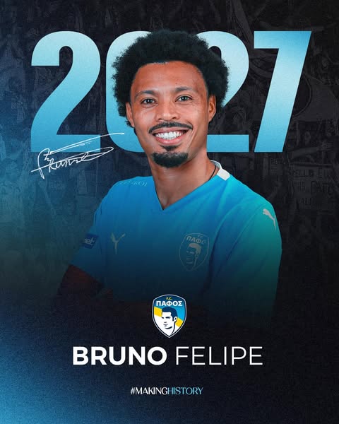 «Η Πάφος FC είναι στην ευχάριστη θέση να ανακοινώσει την επέκταση της συμφωνίας της με τον Βραζιλιάνο εξτρέμ Μπρούνο Φελίπε, μέχρι το 2027.