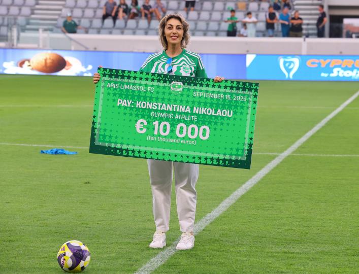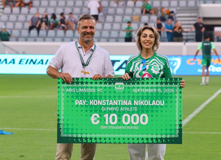 O Άρης νωρίτερα σήμερα ανακοίνωσε τη χορηγία της αθλήτριας της σκοποβολής στο σκητ, Κωνσταντίνα Νικολάου, χορηγία που δόθηκε σήμερα πριν την έναρξη του ματς με τον Ολυμπιακό. Στις 10 χιλιάδες η χορηγία της ομάδας της Λεμεσού προς την αθλήτρια μας.