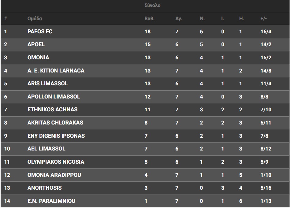 19:00 Ομόνοια Λευκωσίας – Πάφος FC
