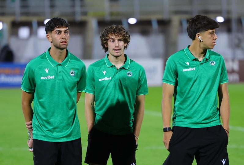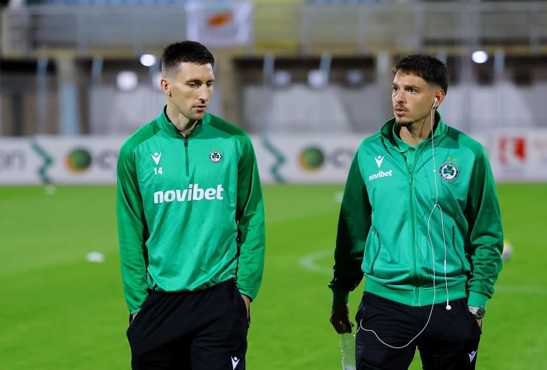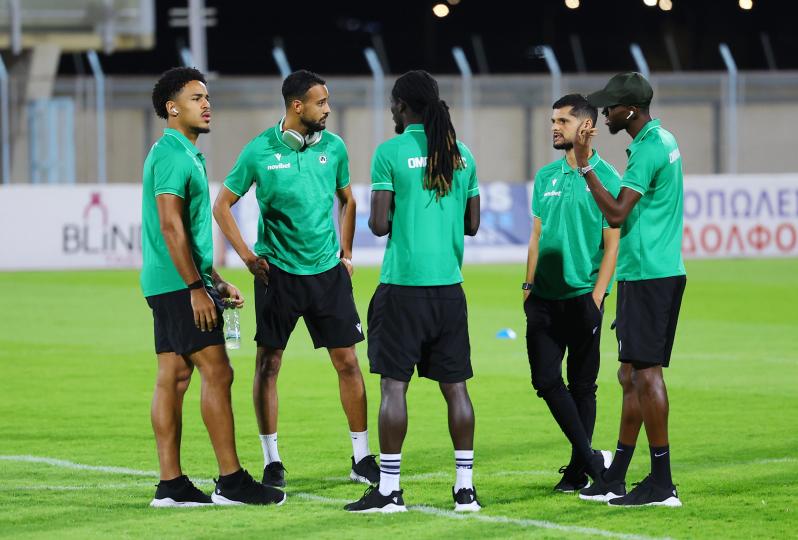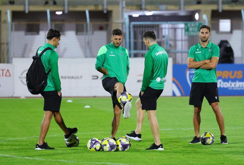 Οι παίχτες της Ομονοίας τα λένε στον αγωνιστικό χώρο πριν από την έναρξη του αγώνα κόντρα στην ΕΝΠ για την 9η αγωνιστική της Cyprus League by Stoiximan.