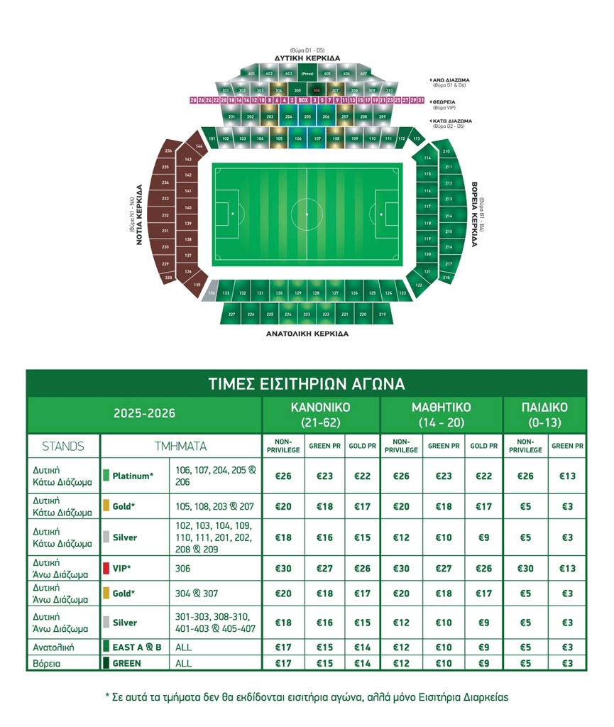 Ισχύει η ταξιθέτηση των εισιτηρίων του αγώνα και των εισιτηρίων διαρκείας.