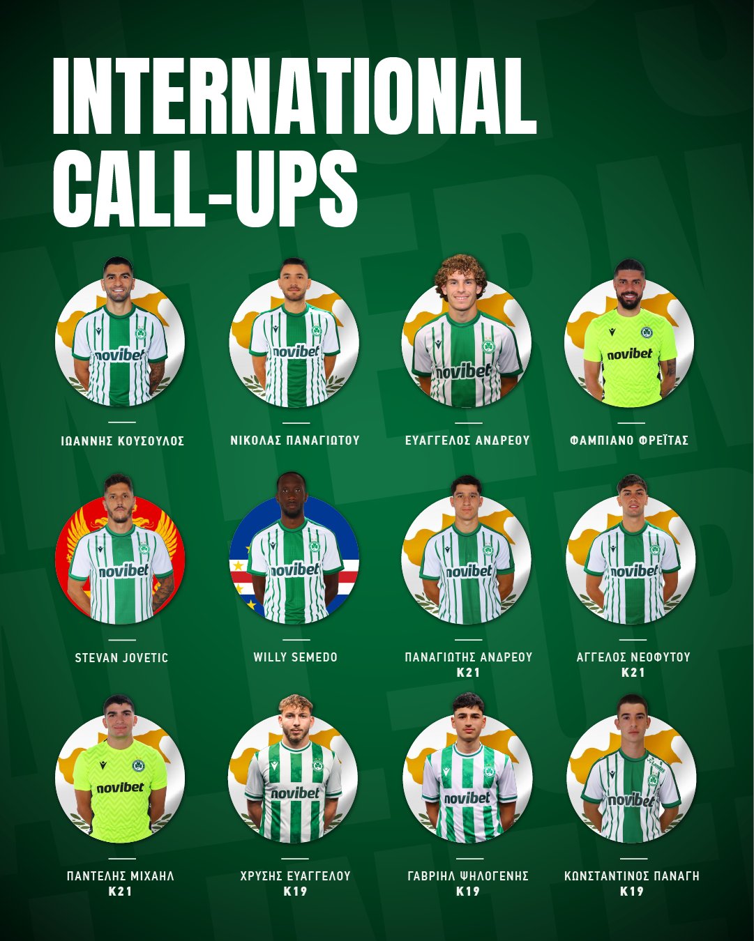 Η Ομόνοια ενημέρωσε για τους 12 διεθνείς της, τους δέκα Κύπριους συν τους Σεμέδο - Γιόβετιτς. Μία ντουζίνα λοιπόν εκτός «Ηλίας Πούλλος» για το επόμενο διάστημα.