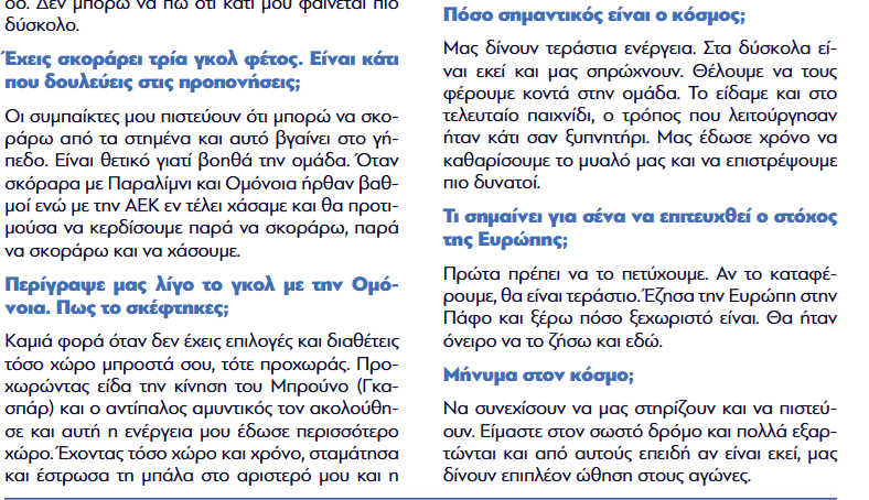 Ο εκ των αρχηγών του Απόλλωνα, Γιόζεφ Κβίντα, παραχώρησε συνέντευξη στο γραφείο τύπου της ομάδας και συγκεκριμένα στο Match Program του αγώνα με αντίπαλο την Ανόρθωση.