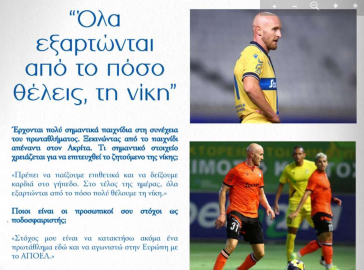Μπρόρσον: «Ήρθα στη μεγαλύτερη ομάδα» Α' ΚΑΤΗΓΟΡΙΑ ΑΠΟΕΛ 10.01.202613:55 Δηλώσεις στο πρόγραμμα αγώνα του ΑΠΟΕΛ παραχώρησε ο Φρανζ Μπρόρσον ενόψει του ματς με τον Ακρίτα «Έσπασε» το ένα ρεκόρ, πάει για το άλλο! Αναλυτικά: CLOSE