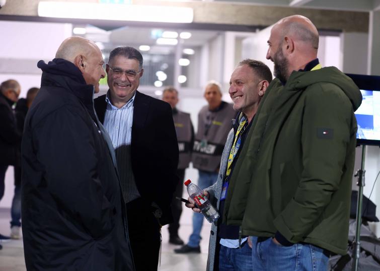 Κουβέντα ανάμεσα στους προέδρους, της ΑΕΚ και του ΑΠΟΕΛ πριν τον μεταξύ τους αγώνα για την πρεμιέρα των πλέι οφ. Ο Άντρος Καραπατάκης και ο Χάρης Φωτίου, μαζί με τους συνεργάτες τους σε ένα ιδιαίτερο πηγαδάκι στην Αρένα της Λάρνακας.