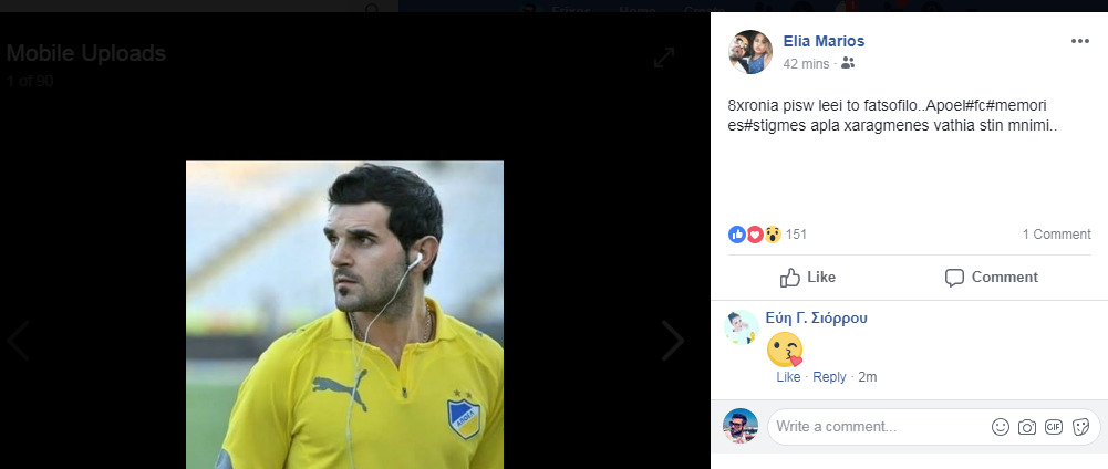 Ο Μάριος Ηλία έζησε μεγάλες στιγμές στον ΑΠΟΕΛ και έχει κάθε λόγο να τις αναπολεί. Σήμερα, ο παλαίμαχος ποδοσφαιριστή, των "γαλαζοκιτρίνων" κοινοποίησε μια παλιά του φωτογραφία στο facebook γράφοντας το ακόλουθο μήνυμα: