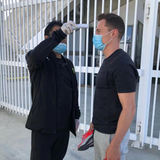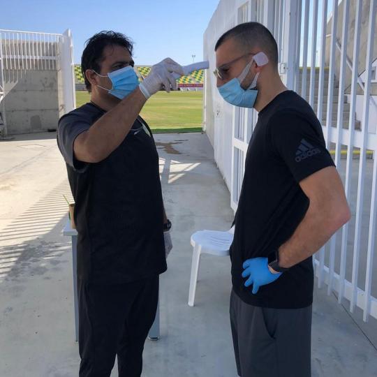 Οι ποδοσφαιριστές της ΑΕΚ επέστρεψαν και αυτοί σήμερα στις προπονήσεις, προπονήσεις που θα γίνονται σε επιτρεπτά γκρουπ των πέντε, προτού όμως γίνει αυτό, όλοι πέρασαν από έλεγχο για τυχόν πυρετό. Όπως βλέπετε και στη φωτογραφία από το προπονητικό της ΑΕΚ, τηρούνται όλα τα μέτρα ασφαλείας και οι αποστάσεις μεταξύ των παικτών.