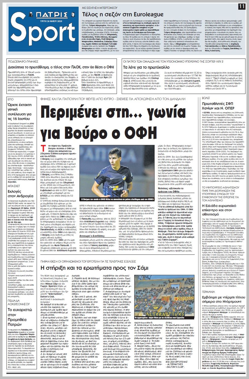 Περιμένει στην…γωνιά (pic) Α' ΚΑΤΗΓΟΡΙΑ ΜΠΛΑ ΜΠΛΑΣ ΑΠΟΕΛ ΑΠΟΛΛΩΝΑΣ 26.05.202009:35 Αυτό αναφέρει η εφημερίδα Sport για τον ΟΦΗ και τους Πραξιτέλη Βούρο και Φώτη Παπουλή. 20200526_patris_sport_0856.jpg