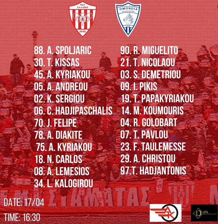 Η Νέα Σαλαμίνα ανακοίνωσε την αποστολή της ομάδας ενόψει του αγώνα με την Ομόνοια Αραδίππου.