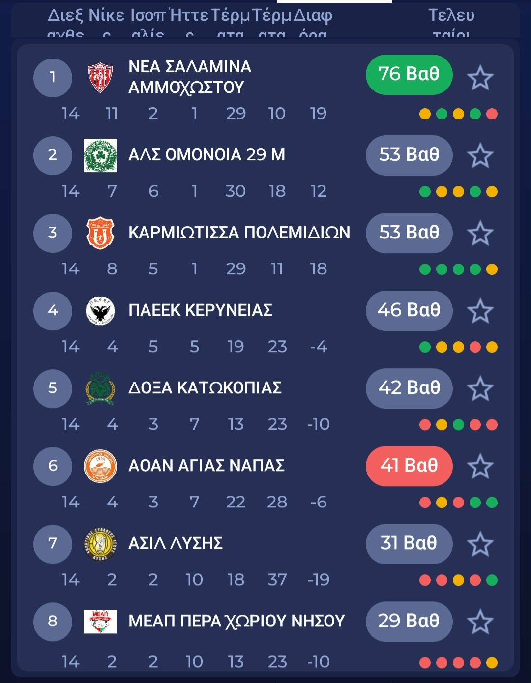 Η τελική βαθμολογία στον Β’ Όμιλο